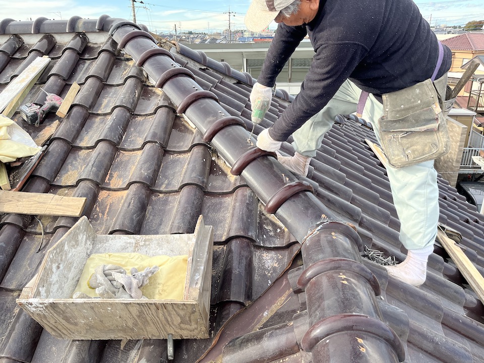 施工不良で崩れ落ちそうだった棟瓦を南蛮漆喰で積み直し!