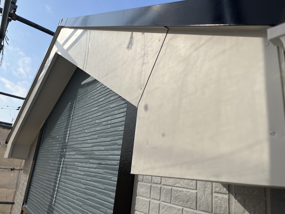 屋根・外壁・防水 破風板金(ガルバリウム鋼板)巻き工事 2023年12月19日 intech-inc 劣化が進み表面が剥がれ出していた破風板をガルバリウム鋼板材でカバー! Before_01 After_01 Before_02 After_02