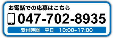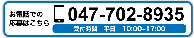 お電話の場合(047-702-8935)は平日10:00~17:00の間で受け付けております。