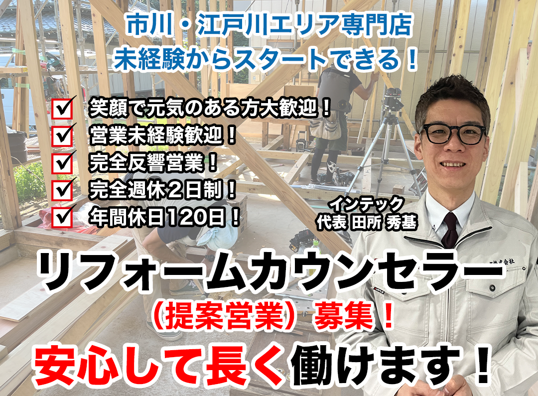 当社では現在、事業拡大のため、また、これまでにない新しいリフォーム会社を作っていくために、住宅リフォームのカウンセラーを募集しています。