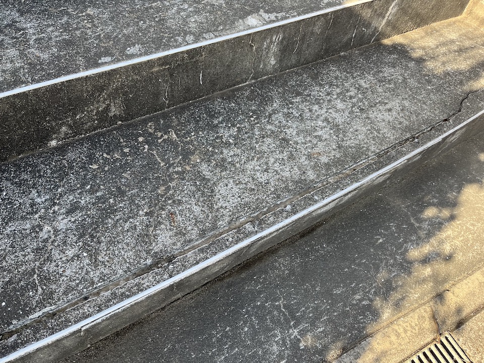 雨水が浸透し、ひび割れ・浮きが起きてモルタルを削り修復!