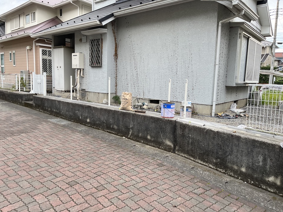 施工不良によって崩れ傾いていたブロック、フェンスをベースからやり直し!