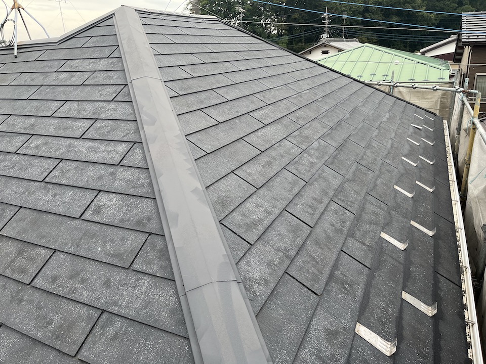屋根・外壁・防水 コロニアル屋根、重ね葺き(カバー工法)工事 2023年10月31日 intech-inc ひび割れが起きる屋根材(ノンアスベスト)を、ガルバリウム鋼板屋根に改修! Before_01 After_01 Before_02 After_02